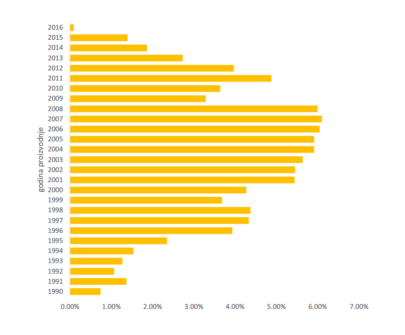 PONUDA OSOBNIH AUTOMOBILA PREMA GODINI PROIZVODNJE