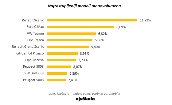 Upravo je Espaceova priča veoma zanimljiva. Radi se o automobilu pod imenom Projekt P18 kojeg je njegov tvorac, francuska tvrtka Matra, prvotno ponudila Peugeotu koji ih je odbio. Naknadno, isti automobil su ponudili Renaultu koji je pristao i u međuvremenu prodao gotovo 1,5 milijuna primjeraka. Upravo Renault je najzastupljenija marka monovolumena na Njuškalu. Svaki peti oglašeni monovolumen je Renaultov, a među tri najzastupljenije marke monovolumena nalaze se još i Ford te Volkswagen.