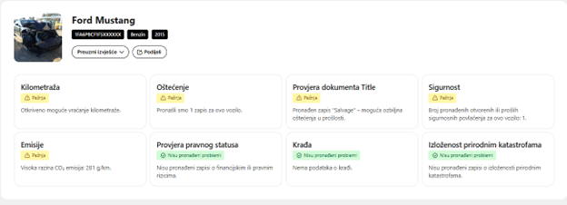 | Provjera vlasništva vozila | ✅(osnovno) | ✅ |