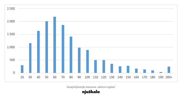 Ukoliko, pak, uzmemo u obzir čitav Zagreb, dolazimo do zaključka da je, prosječno, cijena mjesečnog najma stana od 60 kvadrata za 40 posto viša od cijene najma stana od 30 kvadrata. Trenutno se na Njuškalu nudi gotovo 3.000 stanova za najam u Splitu, a najviše na Žnjanu i Sućidaru. U Splitu je cijena najma stana od 60 kvadrata za čak 60 posto viša u odnosu na upola manji, 30 kvadrata, stan. No, razlike su drugačije na razini kvartova. Primjerice, prosječna cijena mjesečnog najma stana od 30 kvadrata na Žnjanu iznosi 2.083 kune, dok je prosječna cijena mjesečnog najma stana od 60 kvadrata u tom kvartu 3.816 kuna. U kvartu Pujanke, prosječna cijena mjesečnog najma za 30 kvadrata iznosi 1.937 kuna, dok najam dvostruko većeg stana iznosi 2.432 kune. Na Sućidaru, pak, za stan od 30 kvadrata ćete morati izdvojiti 1.759 kuna mjesečno, dok za dvostruko veći stan ćete morati posegnuti u džep za još 1.000 kuna.