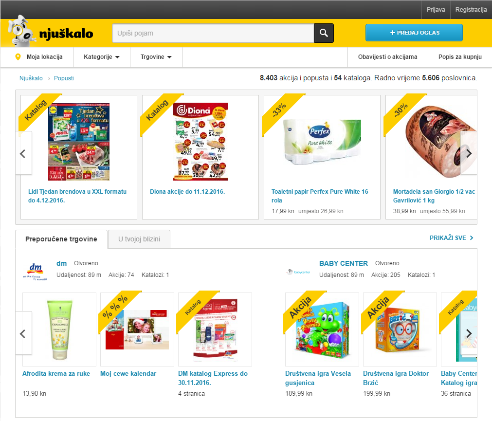 Informiranje o akcijama i popustima putem interneta učestala je praksa, čak 4 od 5 ispitanika informacija o akciji koju su pronašli putem interneta barem povremeno potakne na kupnju, a Njuškalovo istraživanje pokazuje i druge, zanimljive kupovne navike u Hrvatskoj. Čak 38 posto ih redovito obavlja kupnju temeljem akcijskih cijena, a 40 posto to čini često. Kada je riječ o samom informiranju putem kataloga s akcijama i popustima, korisnici u prosjeku pregledaju 7 od 10 kataloga. Čak 81 posto ih se o kupovini informira putem takvog sadržaja. Među njima je 56 posto žena i 44 posto muškaraca, a više od polovice ih je u dobi od 18 do 49 godina.