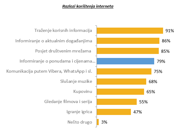 Informiranje o ponudama i cijenama različitih proizvoda na visokom je, četvrtom, mjestu najčešćih razloga posjećivanja interneta. Ovaj se razlog po prioritetima korištenja interneta smjestio nakon traženja korisnih informacija, informiranja o aktualnim događanjima i posjete društvenim mrežama.