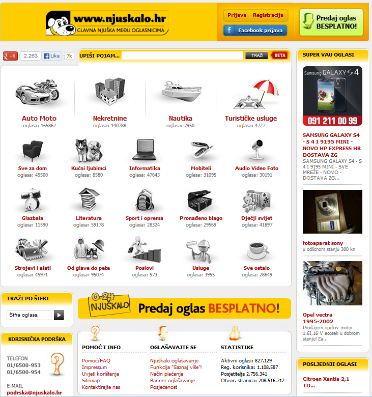 Njuškalo je najveće i najpopularnije hrvatsko online tržište koje svakodnevno spaja milijune prodavača i kupaca. Naša platforma omogućuje trgovanje između privatnih i poslovnih korisnika, a sve to putem sigurnog i za korisnika jednostavnog sustava. Svakog dana na Njuškalu se objavi oko 12.000 novih oglasa, a Njuškalovi posjetitelji se na stranicama zadržavaju prosječno 16 minuta po posjeti. Prošle, 2012. godine, Hrvati su na Njuškalu objavili ukupno 2.542.774 oglasa.