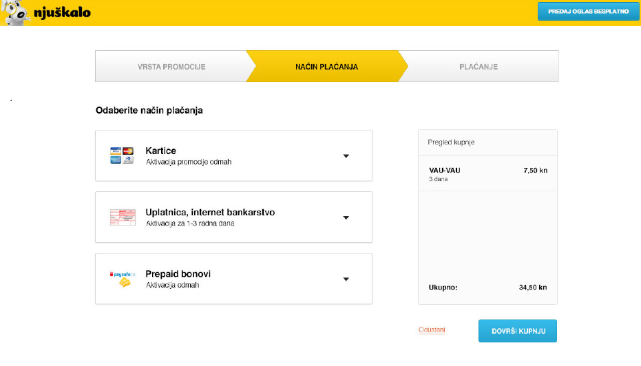 Što uopće nazivamo boost procesom? Kako samo ime upućuje, time među sobom u Njuškalu nazivamo stranice na kojima naši korisnici mogu odabrati te platiti isticanje svojih postavljenih oglasa. Mogu svoj predmet istaknuti putem jednog od featurea; putem VAU-VAU ili Super VAU pozicije, mogu ga ujedno objaviti i u print izdanju kućnog Večernjeg lista ili pak svoj oglas nekretnine obogatiti i tlocrtom. Osim samog boosta, na ovim stranicama u slučaju Nekretnina i Usluga, korisnik kupuje i osnovni oglas.